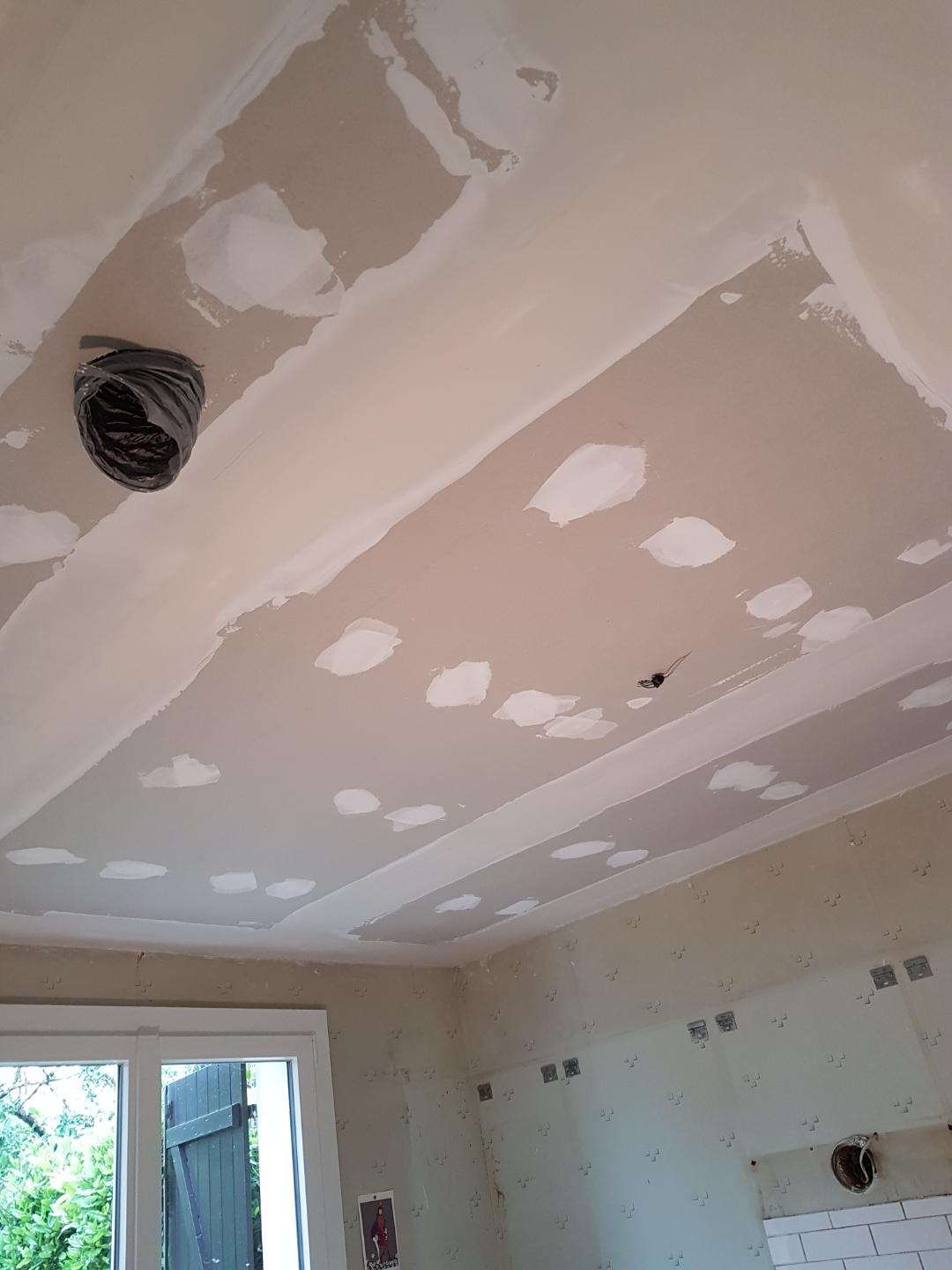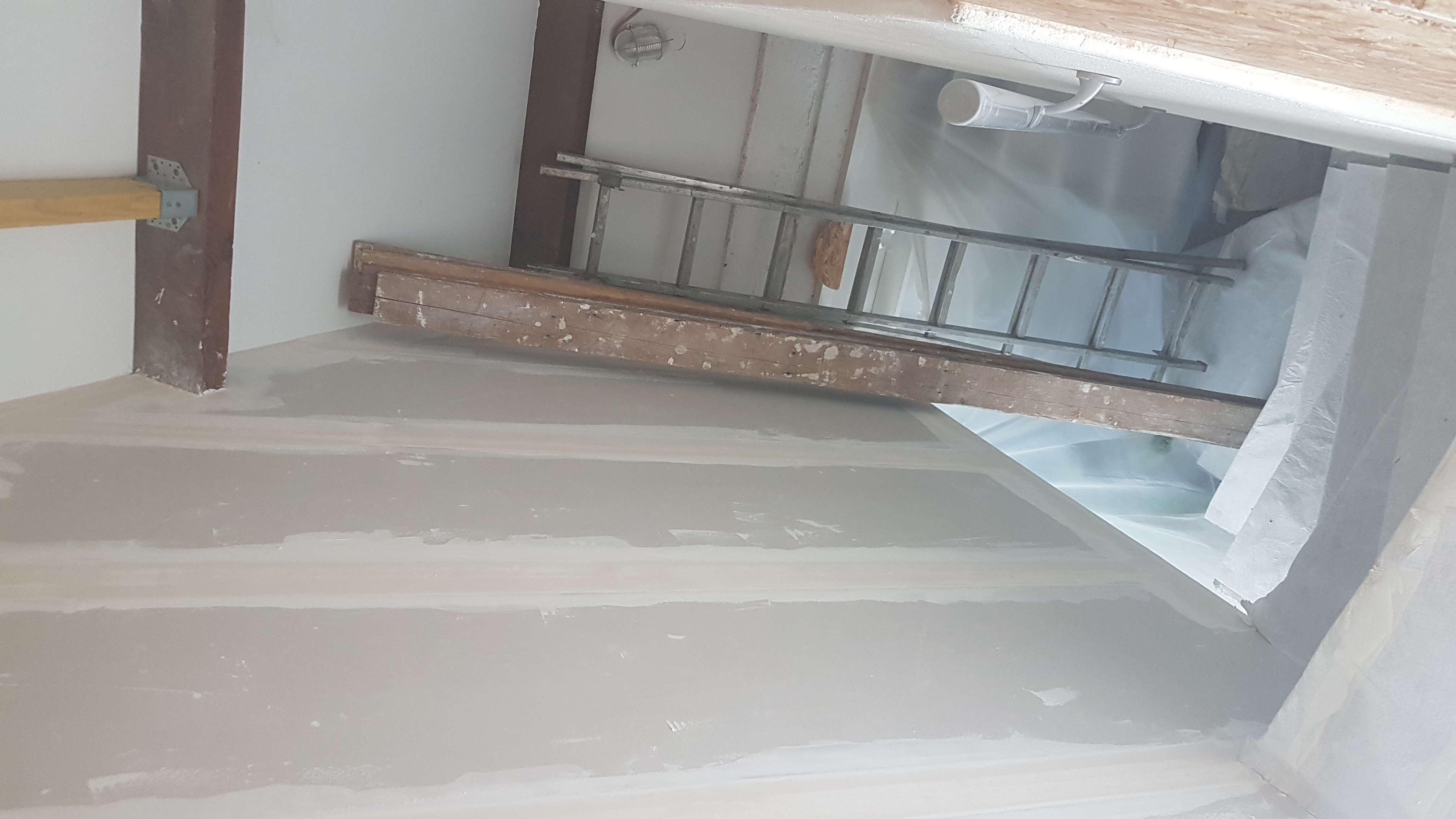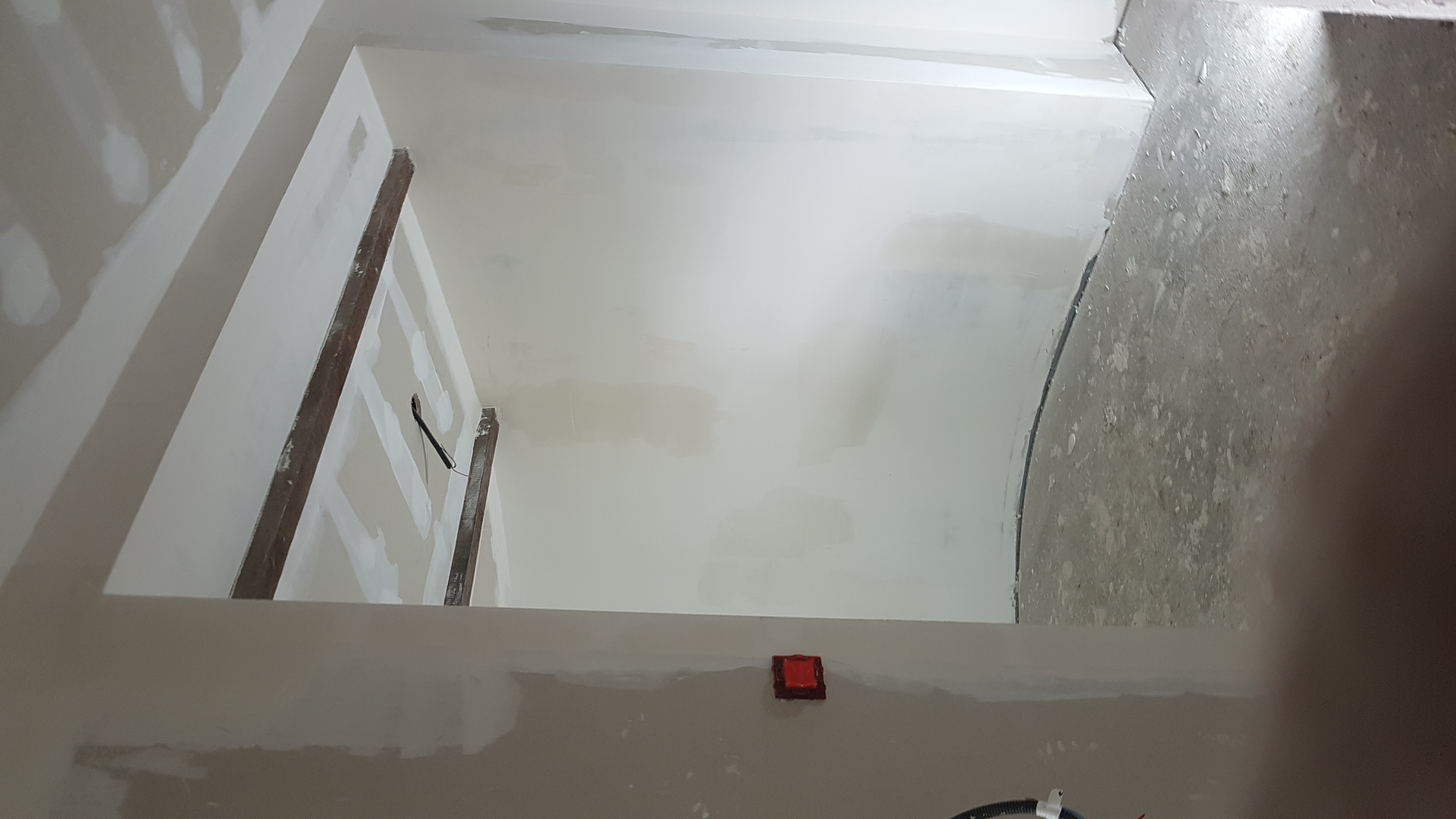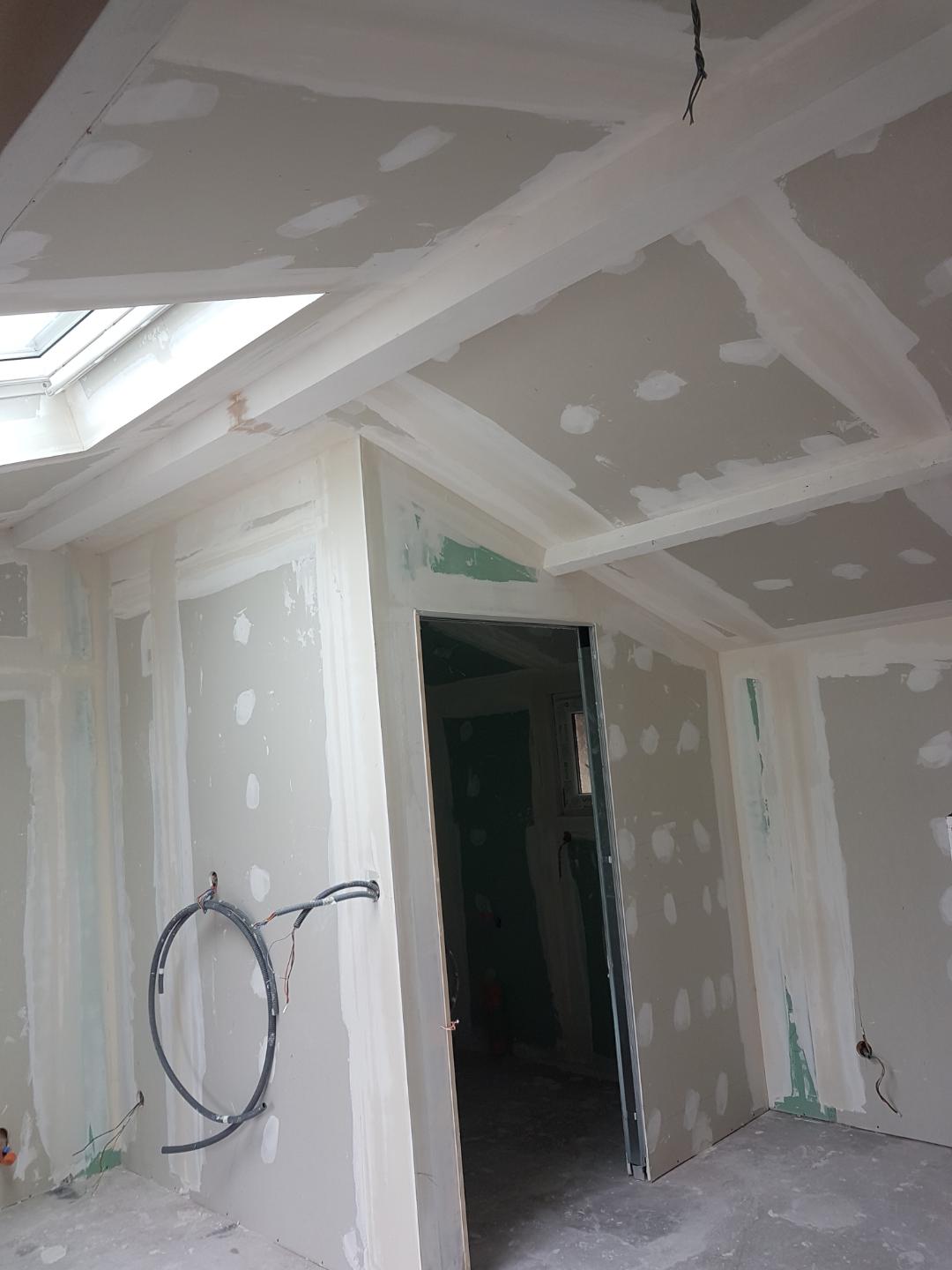 - Pose de bandes plafond en périphérique, et collage des bandes armées et finitions